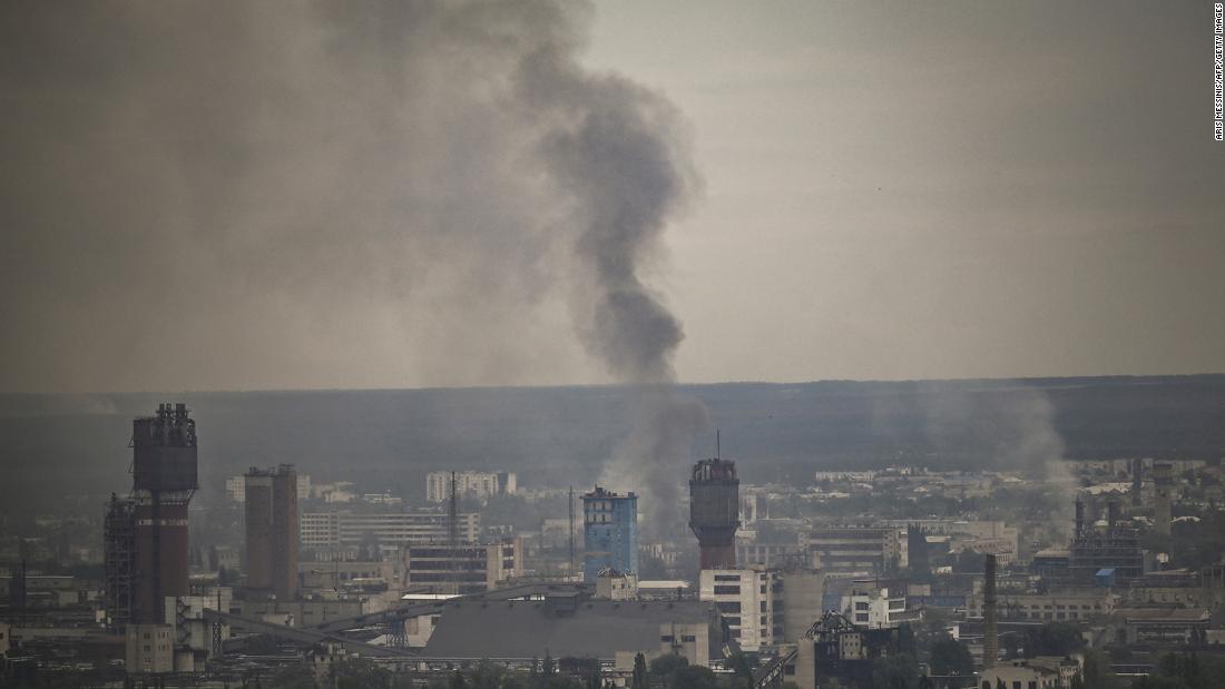 Smoke rises from the city of Severodonetsk in the eastern Ukrainian region of Donbas on June 13.