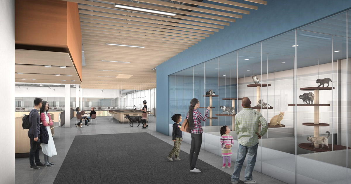 Think grass space for cats, agility training, a pet food shelf, cat yoga — and even possibly an amphitheater for dogs and their owners.