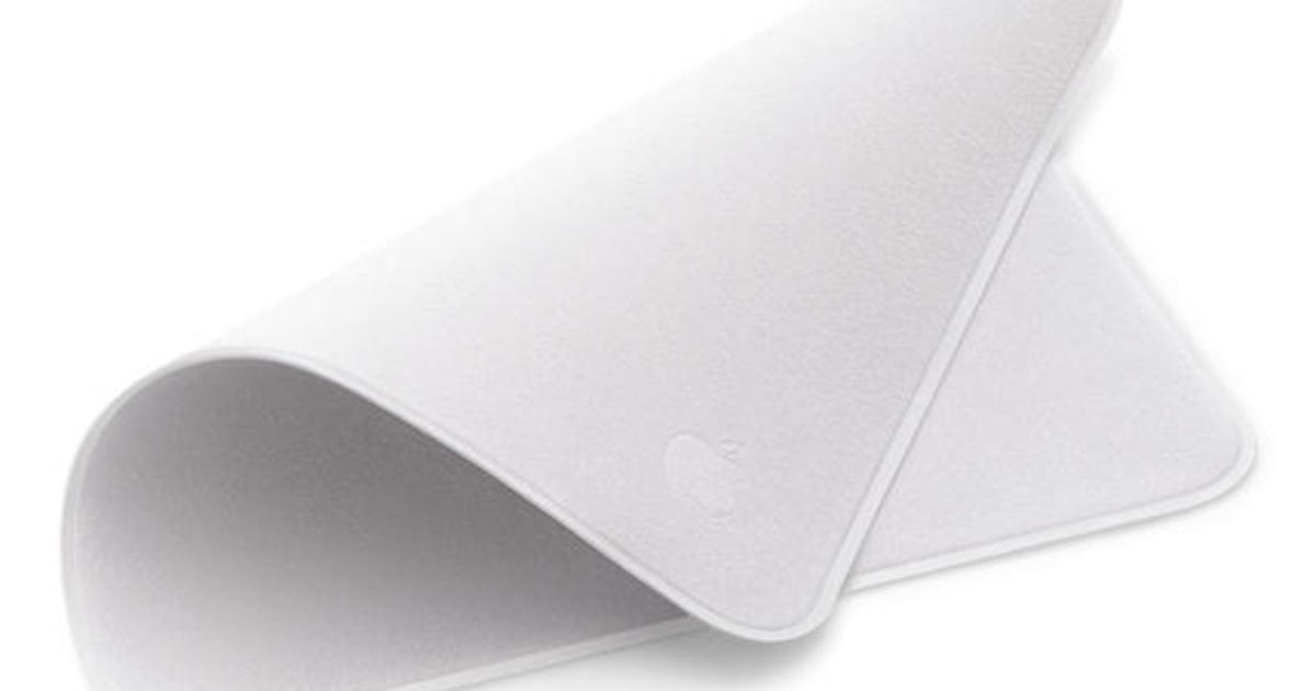 Imprinted with the Apple logo, the cloth is made of “soft, nonabrasive material” and wipes smudges off screens without scratching the surfaces, according to the product’s description.