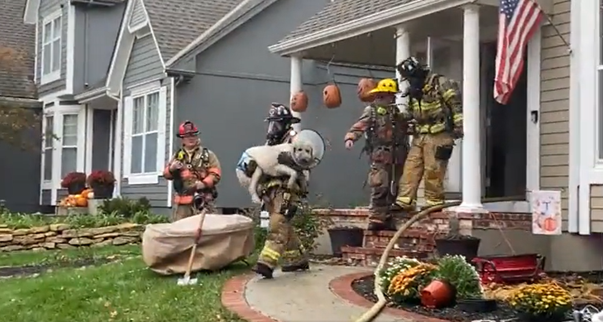 They posted video on social media of the fire and crews carrying a dog out of the structure.