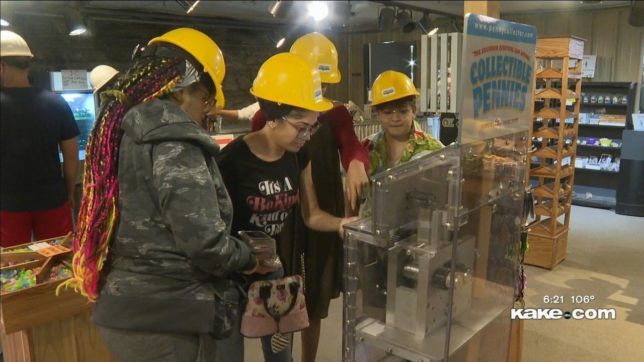 Five-year-old Sophia Dieter told us that she was at the playground earlier today. She said, “It was super-duper hot and I got super-duper sweaty!” But after being in the mines for a while, she said, “My sweat went away I think!”