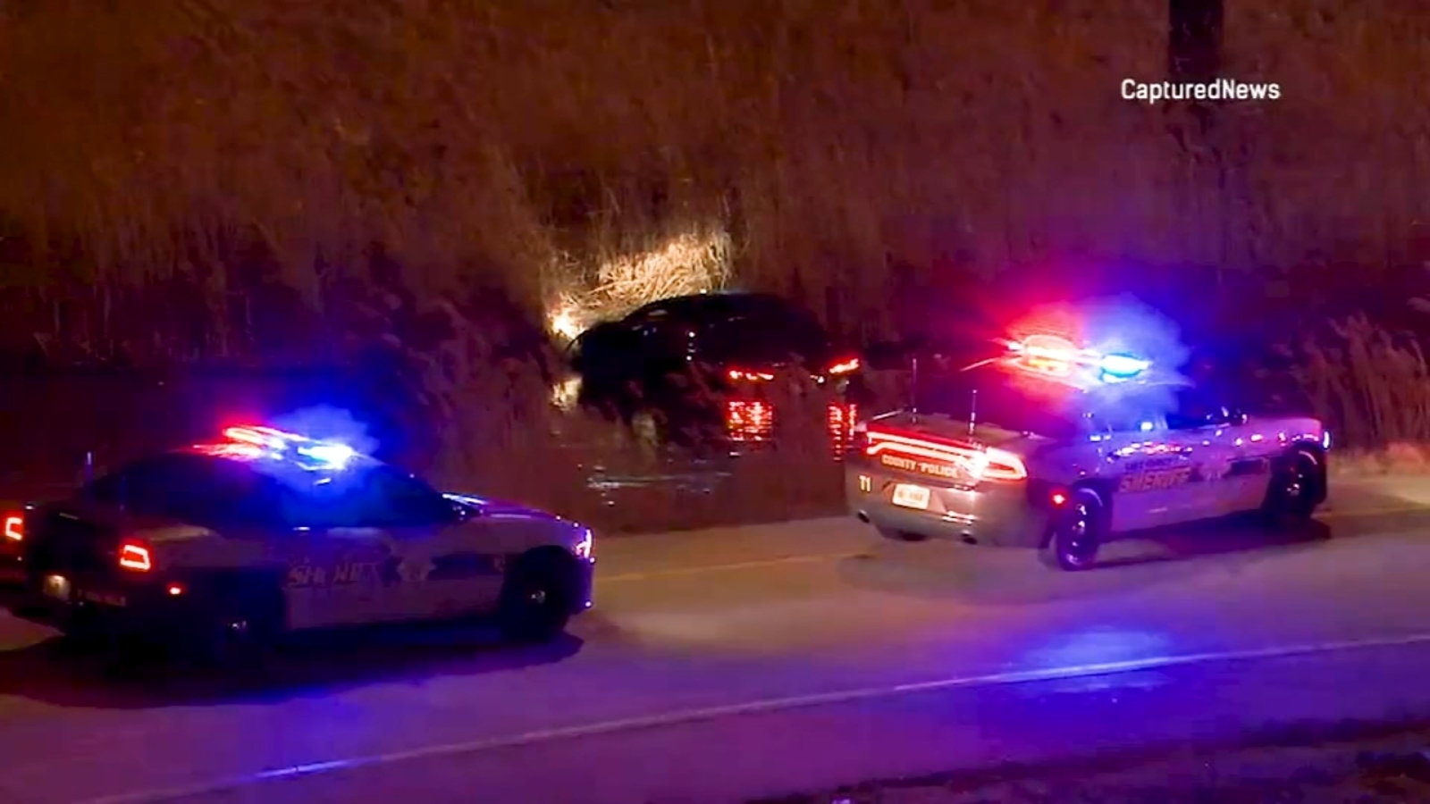 ST. JOHN, Ind. (WLS) — A St. John, Indiana police officer is being credited with rescuing two children from a vehicle that ended up in a retention pond after a police chase late Sunday night.