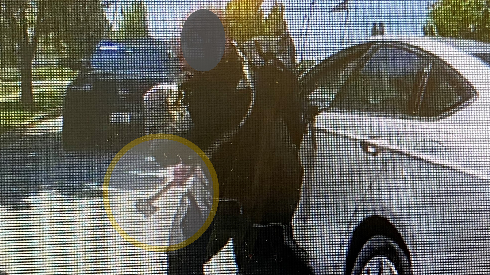 Naperville police released an image from the officer’s bodycam showing the confrontation and the hatchet in the suspect’s hand.