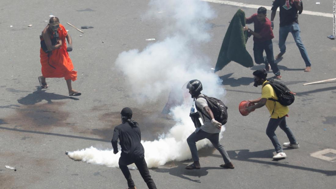 Meanwhile, images from Colombo painted a chaotic scene, with pictures showing demonstrators running from tear gas, and clashing with police in body armor.